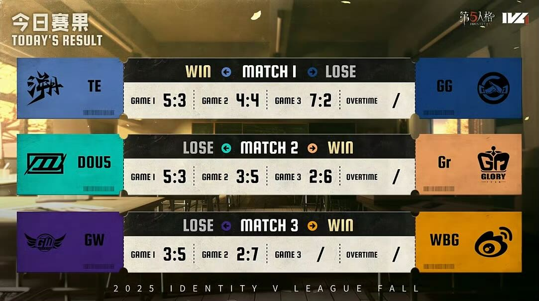 2025年IVL秋季赛常规赛第三周的第二天的比赛已经结束,最终TE、Gr、北京WBG赢得了比赛的胜利,让我们回顾一下今天的对决: