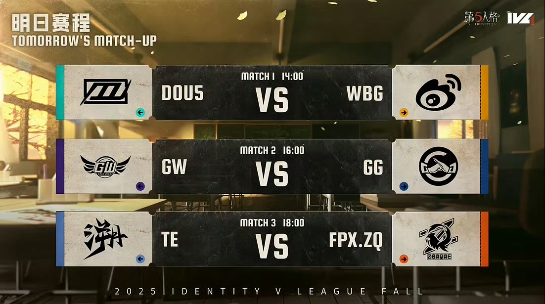 秋季赛第五周的第一日的比赛已经全部结束。今日的胜利使得Gr荣升积分榜榜首,恭喜Gr。成都GG的胜利直接使其在积分榜上的排名越位上升;明日DOU5对战北京WBG,实力悬殊的两支队伍会给我们带来什么样的惊喜?GW对战今日成都GG,看起来似乎是以卵击石的对决又会有怎样出人意料的结果?TE与FPX.ZQ看似排名悬殊,明日的较量又会擦出怎样的火花?FPX.ZQ能否重振旗鼓再创佳绩?让我们一起期待明天的比赛!