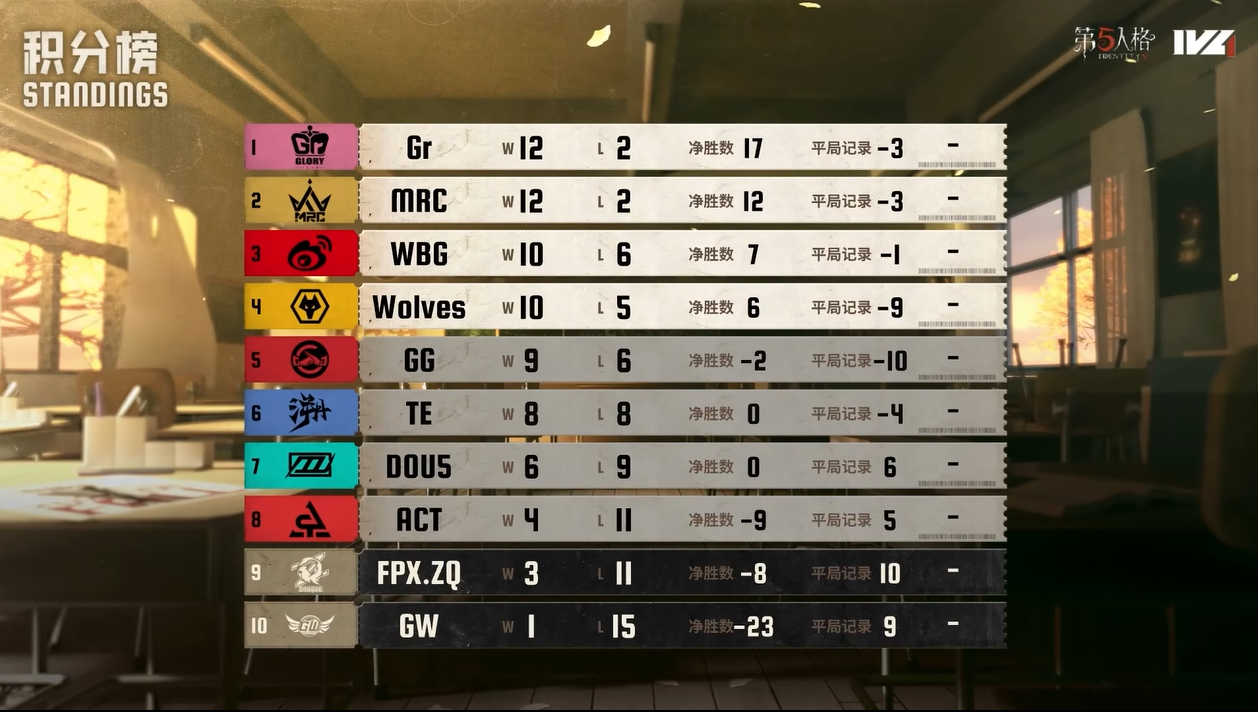 常规赛第八周第二日的比赛精彩继续,反转连连。北京WBG对战ACT,ACT先下一城,北京WBG连追两局,最终北京WBG赢下比赛。TE与GW的对局中,TE战队监管者首局四抓,拉开比分差距,求生者阵营稳定运营,双方交战三局,由TE战队获胜。成都Wolves与FPX.ZQ两队再度交手,成都Wolves监管者稳定多抓,最终由成都Wolves战队获得胜利。