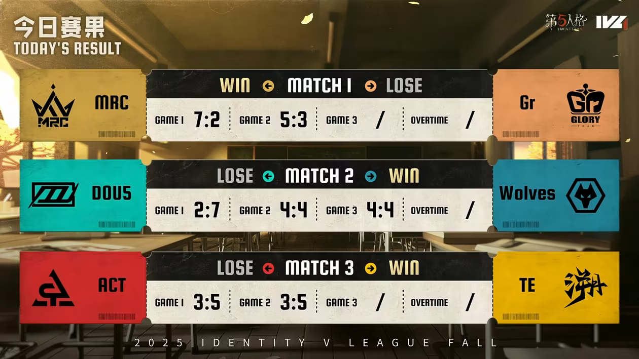 《第五人格》2025IVL秋季赛第五周第三日战罢,多场对决节奏紧凑、高潮迭起!焦点之战中,MRC在与Gr的榜首之争中展现出更强韧性:其求生者面对Gr_Jin的强势压迫成功保平,而监管者则在两局三人开门战中稳健发挥,连下两城,最终以2:0锁定胜局。DOU5与成都Wolves一役,Wolves在ChoAi完成四抓建立优势后选择稳健保平,巩固比分。另一场ACT对阵TE的比赛中,TE战队求生者与监管者双双发力,各取一胜,同样以2:0干净利落终结比赛。精彩对决瞬息万变,让我们共同回顾本周赛场的激战时刻!