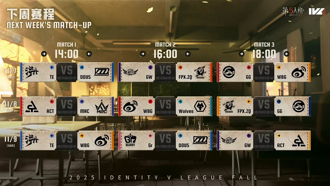本赛季常规赛赛程过半,胜者组格局逐渐明朗。MRC与Gr持续展现强劲统治力,预计将继续稳坐积分榜前二席位。而下周焦点战云集,WBG将迎来关键考验——连续迎战成都GG、成都Wolves与TE三支劲旅。目前这几支队伍积分紧咬,均为胜者组直接竞争对手,此三轮对决或将直接决定下半程的晋级形势。与此同时,榜尾也将上演一场不容错过的激战:暂居末位的GW将与FPX.ZQ正面交锋。究竟是FPX.ZQ实现凤凰涅槃,还是GW迎难而上开启逆袭之路?此役将成为双方破局的关键一战。战火将燃,悬念迭起,精彩敬请期待!